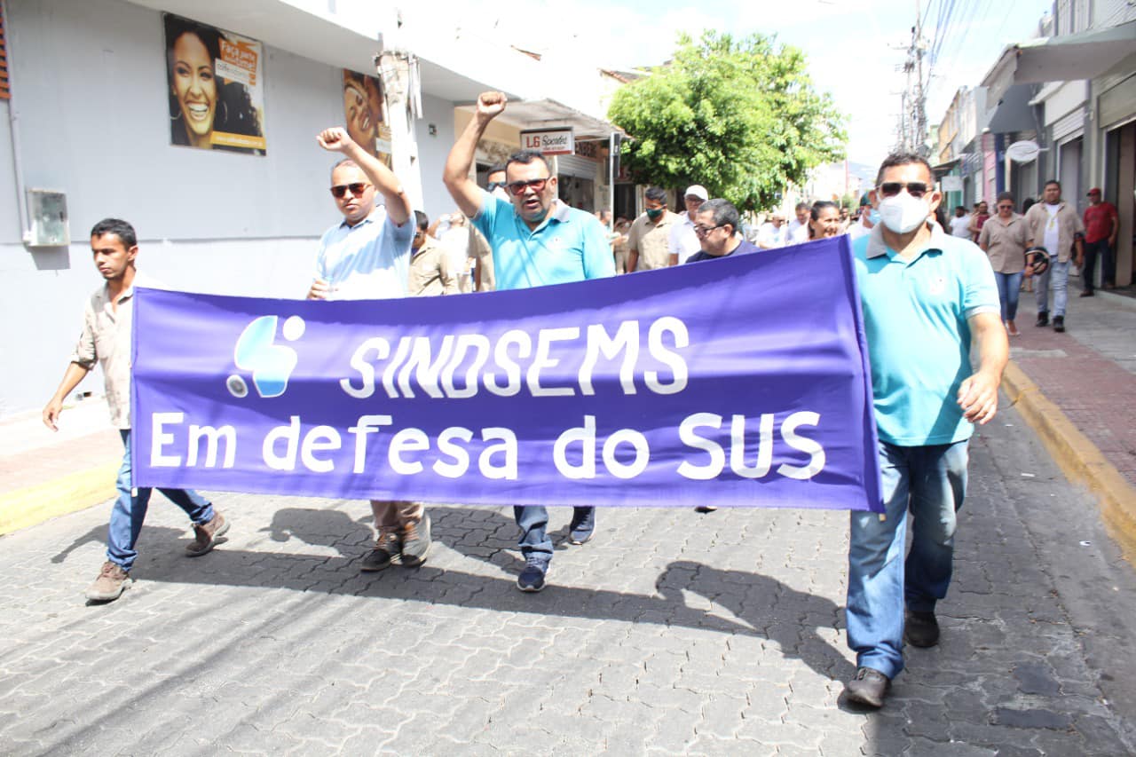 Na manhã desta quarta-feira (21), o Sindsems representado pelo presidente, Gilcelio Paiva e os diretores, Carvalho Neto, Gerlan Dias e Célio Brito estiveram reunidos com trabalhadores e militantes de entidades sindicais e associações, no centro de Sobral, na segunda caminhada em Defesa do SUS (Sistema Único de Saúde).